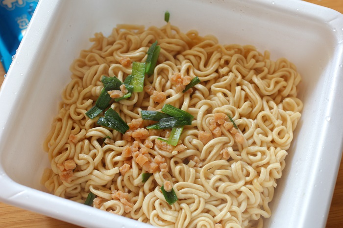 インスタントの焼きそば全般に言えることだけど、お湯を捨てる時に麺が流れていってしまわないように工夫されてるのがすごいよね。