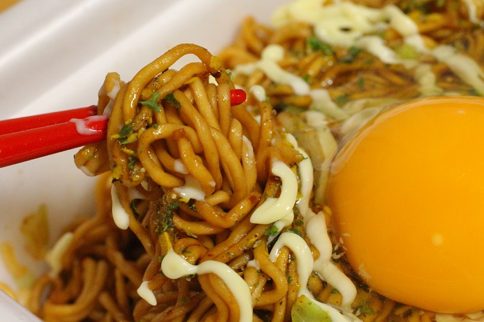 アレンジ!一平ちゃん夜店の焼そばに生卵を乗せていただきます!