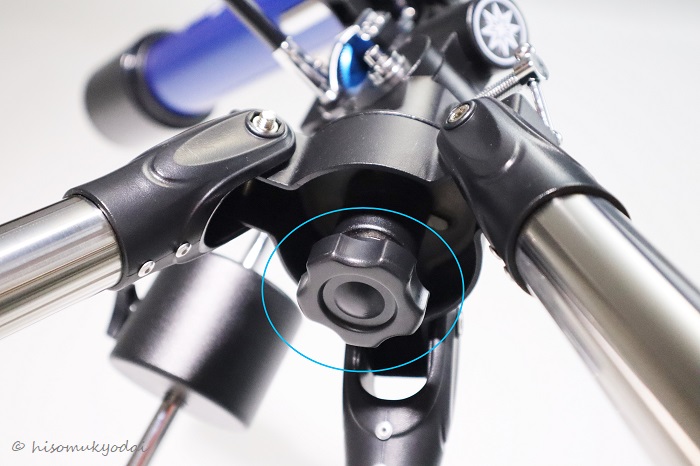 青丸で囲った赤道儀固定ネジがめちゃくちゃ固くて取り付けるのに非常に苦労したのです。